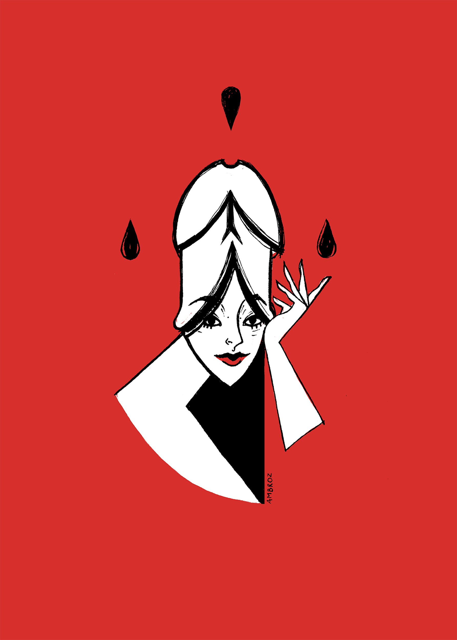 Ostatnio zrobiło się zbyt poważnie. Mnie śmieszy. Możliwe, że mam chu jowe poczucie humoru 🙃 Ilustracja była prezentowana na wystawie „Kobiecość.” w Rondzie Sztuki oraz jest okładką artykułu w Gazecie Wyborczej.