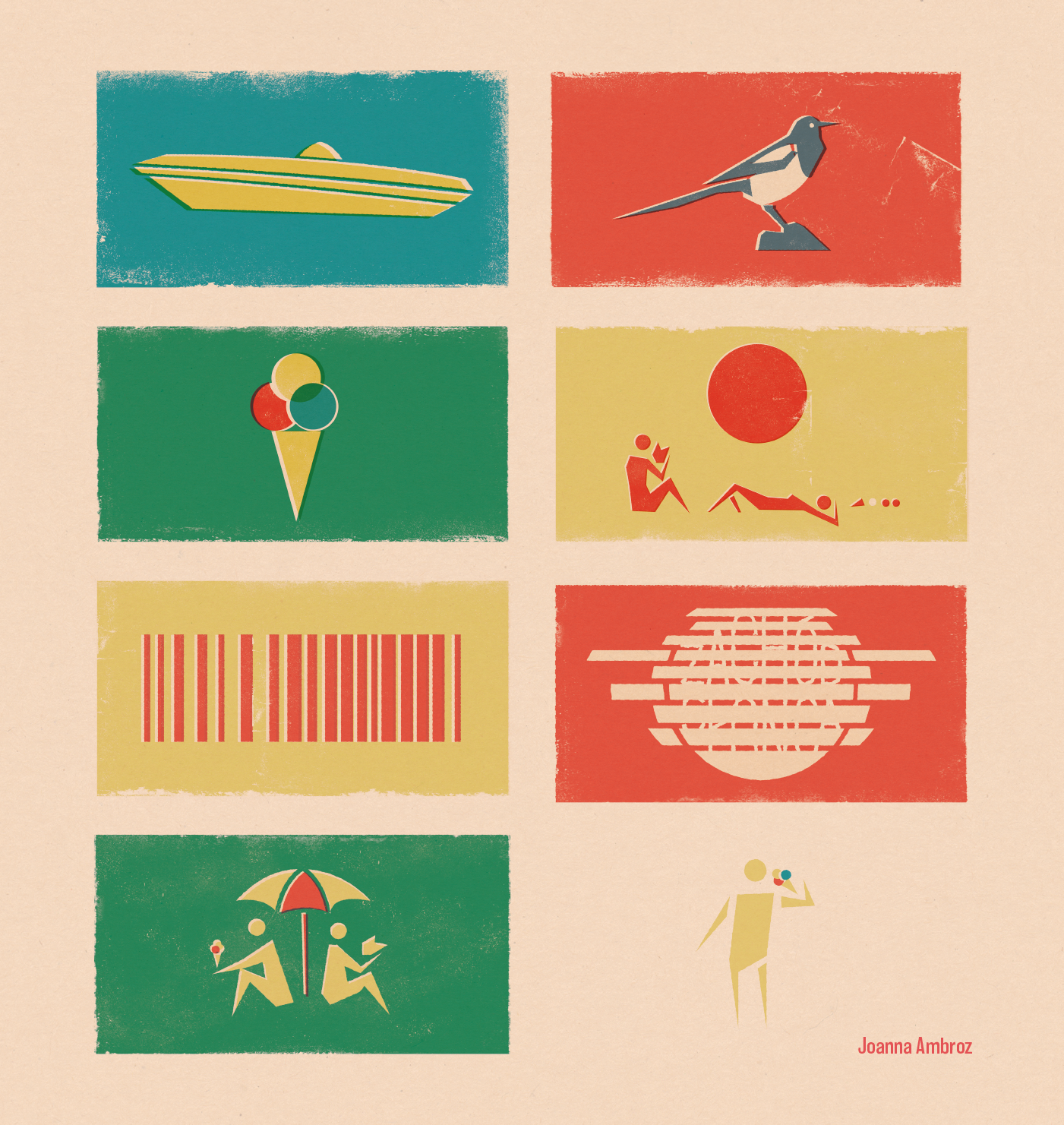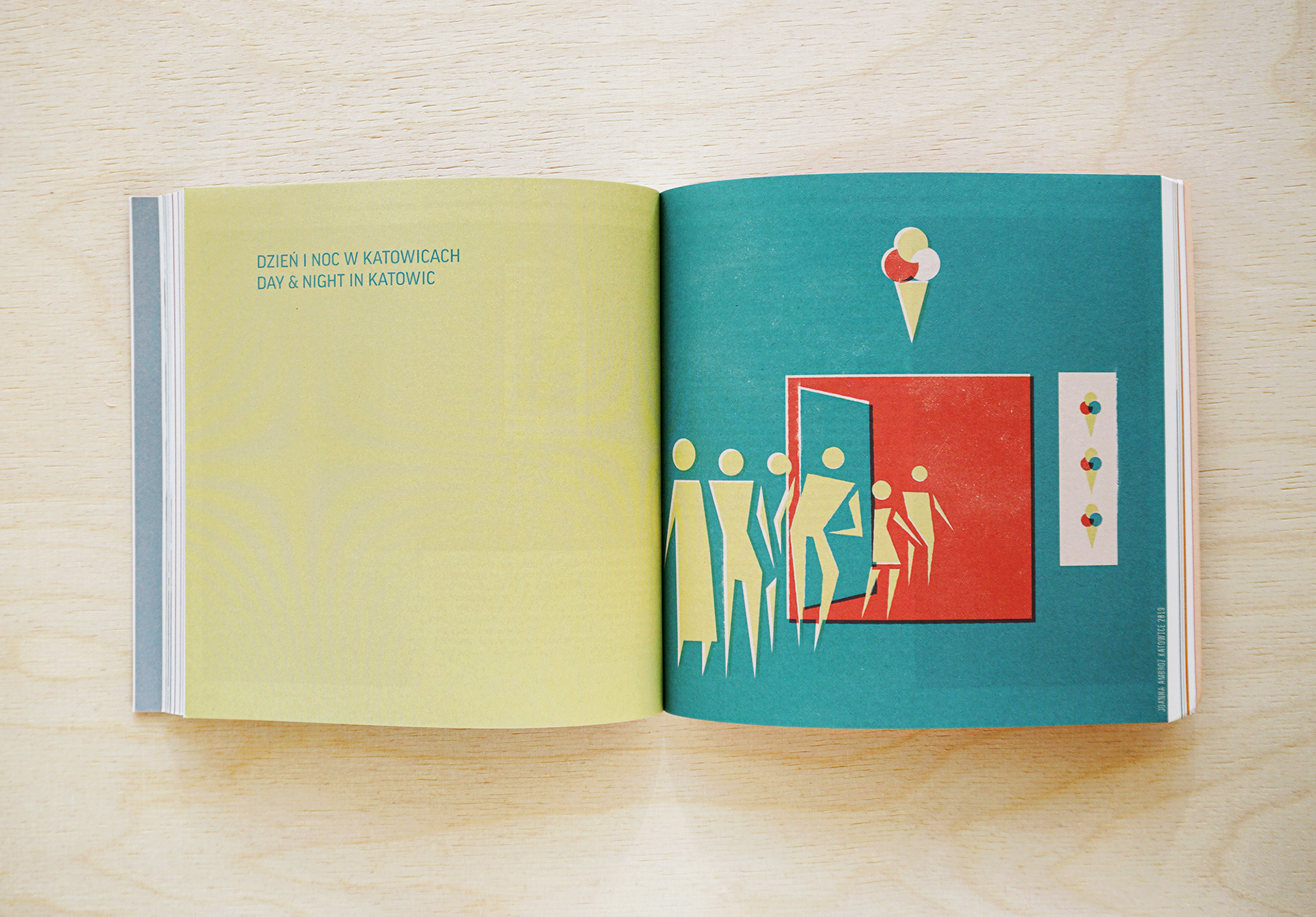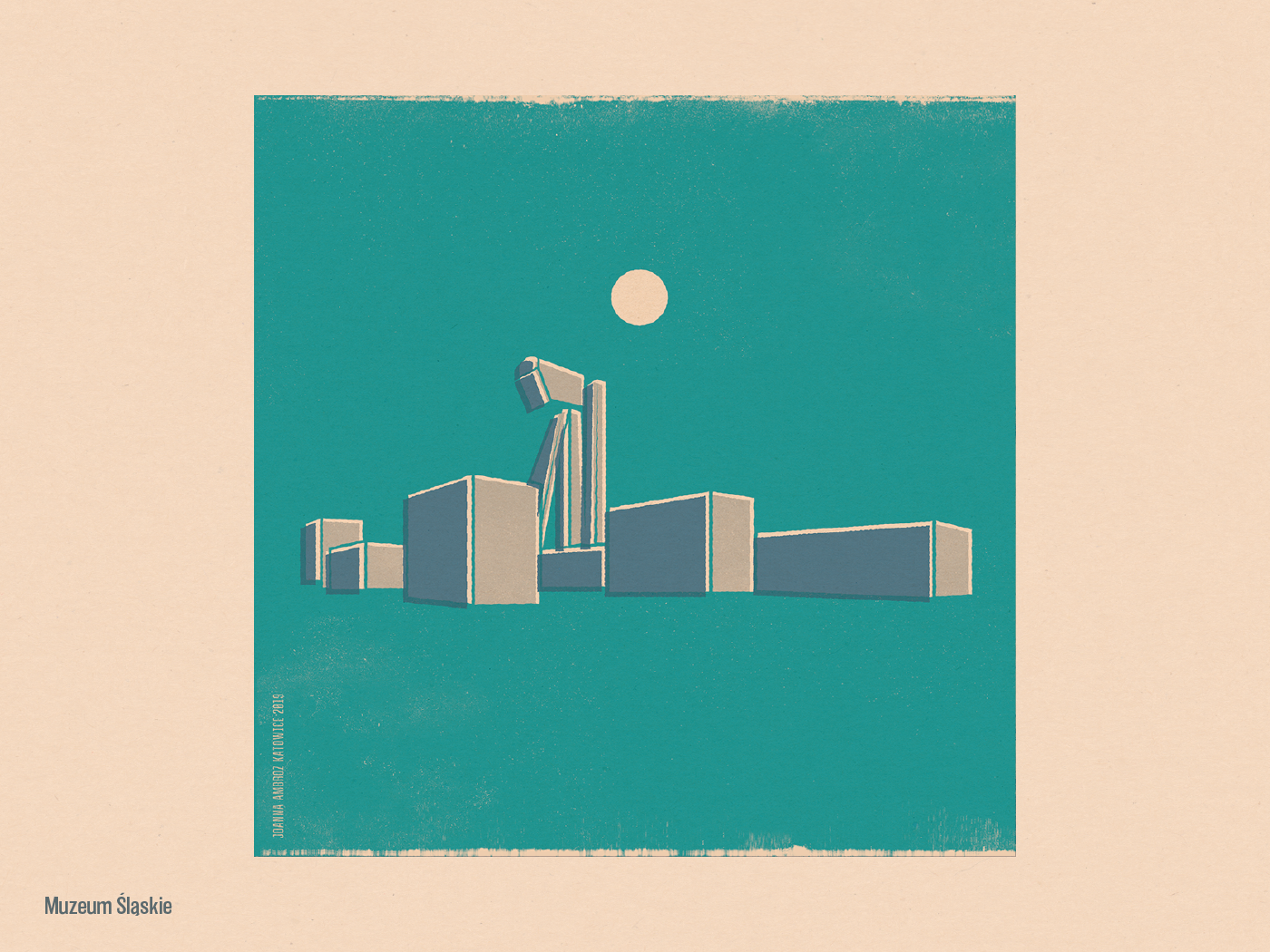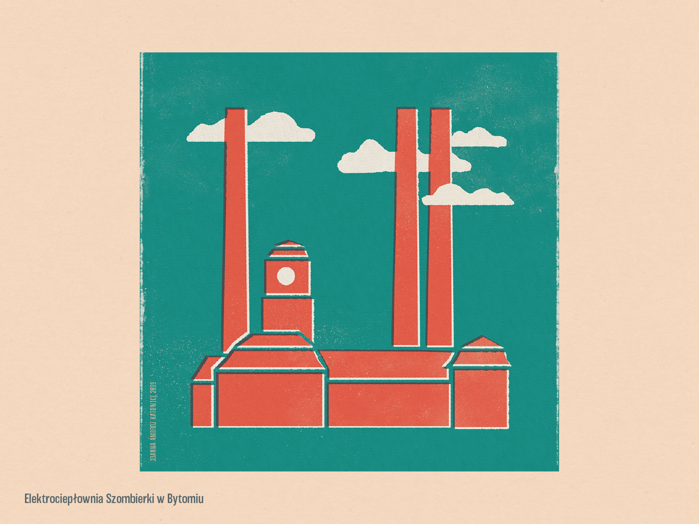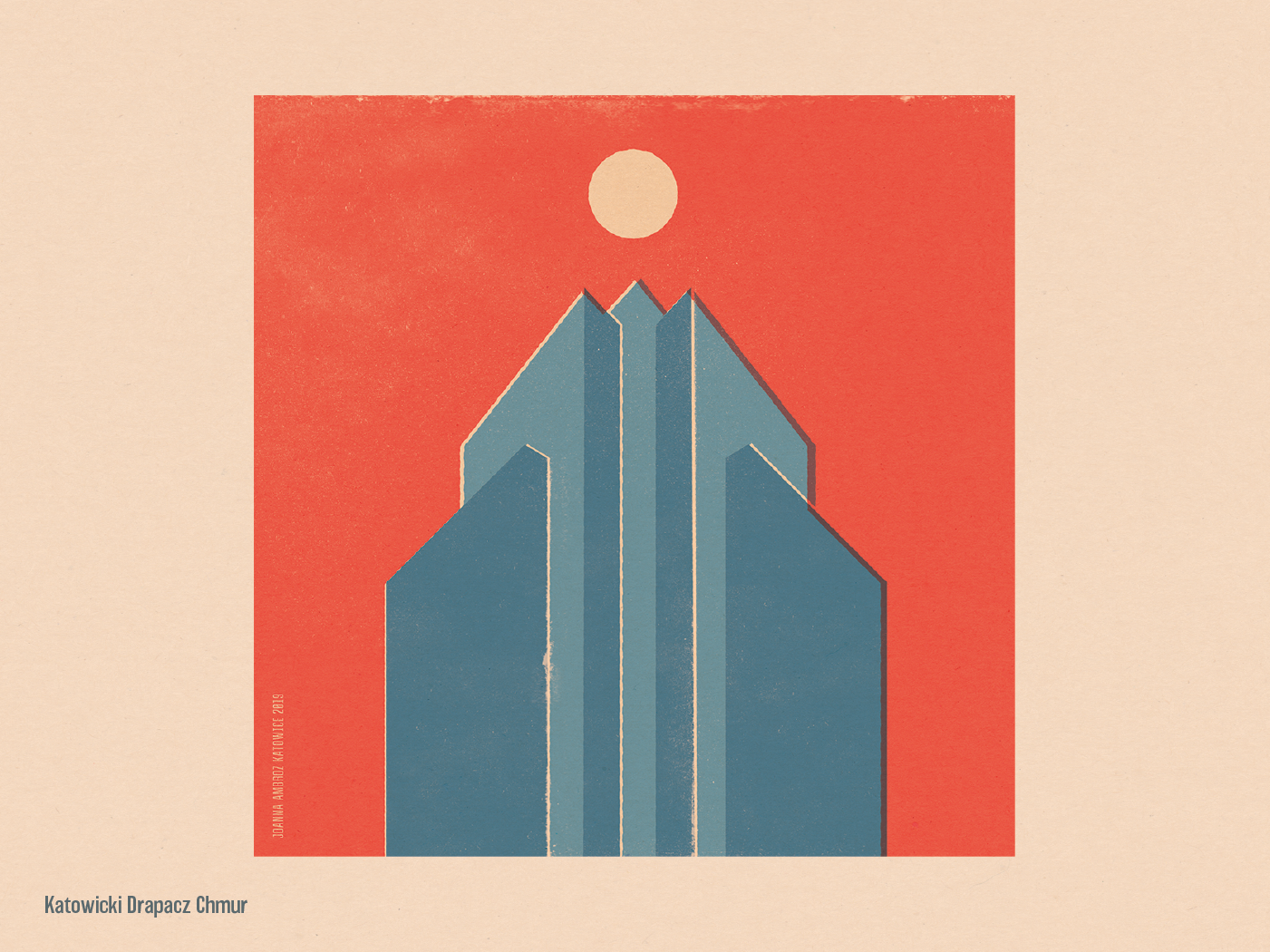 Okładka i seria ilustracji inspirowanych architekturą oraz drukami z lat 60 do przewodnika miejskiego Ogarnij Miasto Katowice.