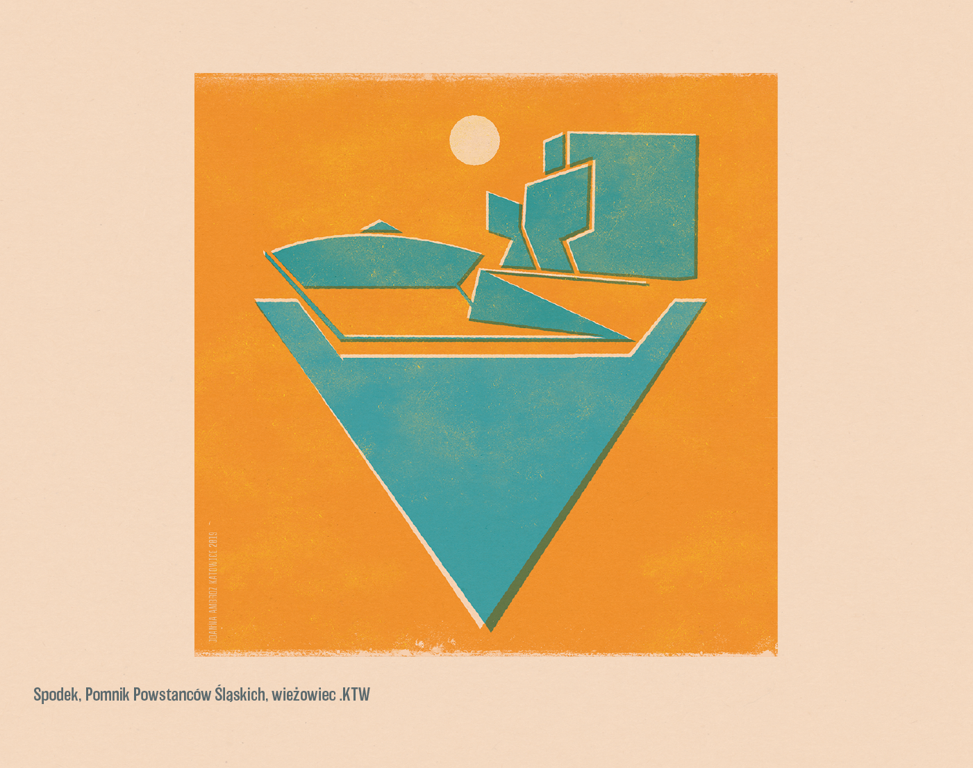 Okładka i seria ilustracji inspirowanych architekturą oraz drukami z lat 60 do przewodnika miejskiego Ogarnij Miasto Katowice.